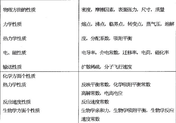 分離過程之所以能順利進行是由于混合物中帶分離的組分的各種物理化學性質之間,至少存在著某一種性質上的差異,可用于分離的常見物性見表2.1所示。